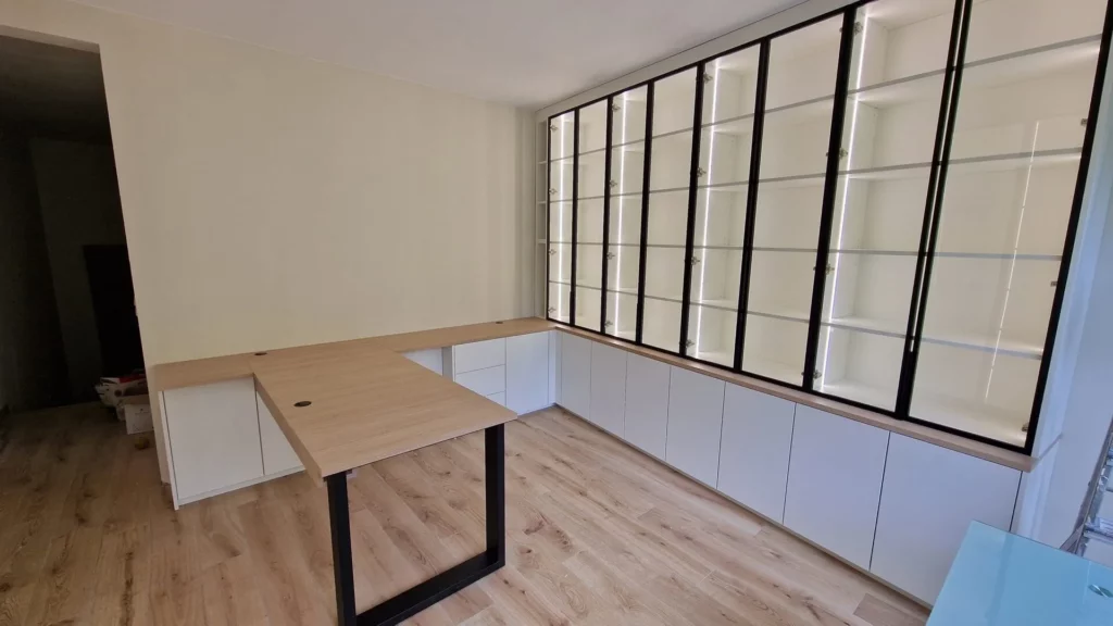 À la recherche d’une idée originale pour votre bureau ? Envie d’une bibliothèque unique ? Besoin d’un meuble adapté à l’angle de votre pièce ? Vous pouvez nous confier vos souhaits en termes de mobilier afin d’organiser et d’optimiser au mieux vos espaces. Le résultat ? Un intérieur unique qui correspond totalement à vos goûts et répond à vos attentes.